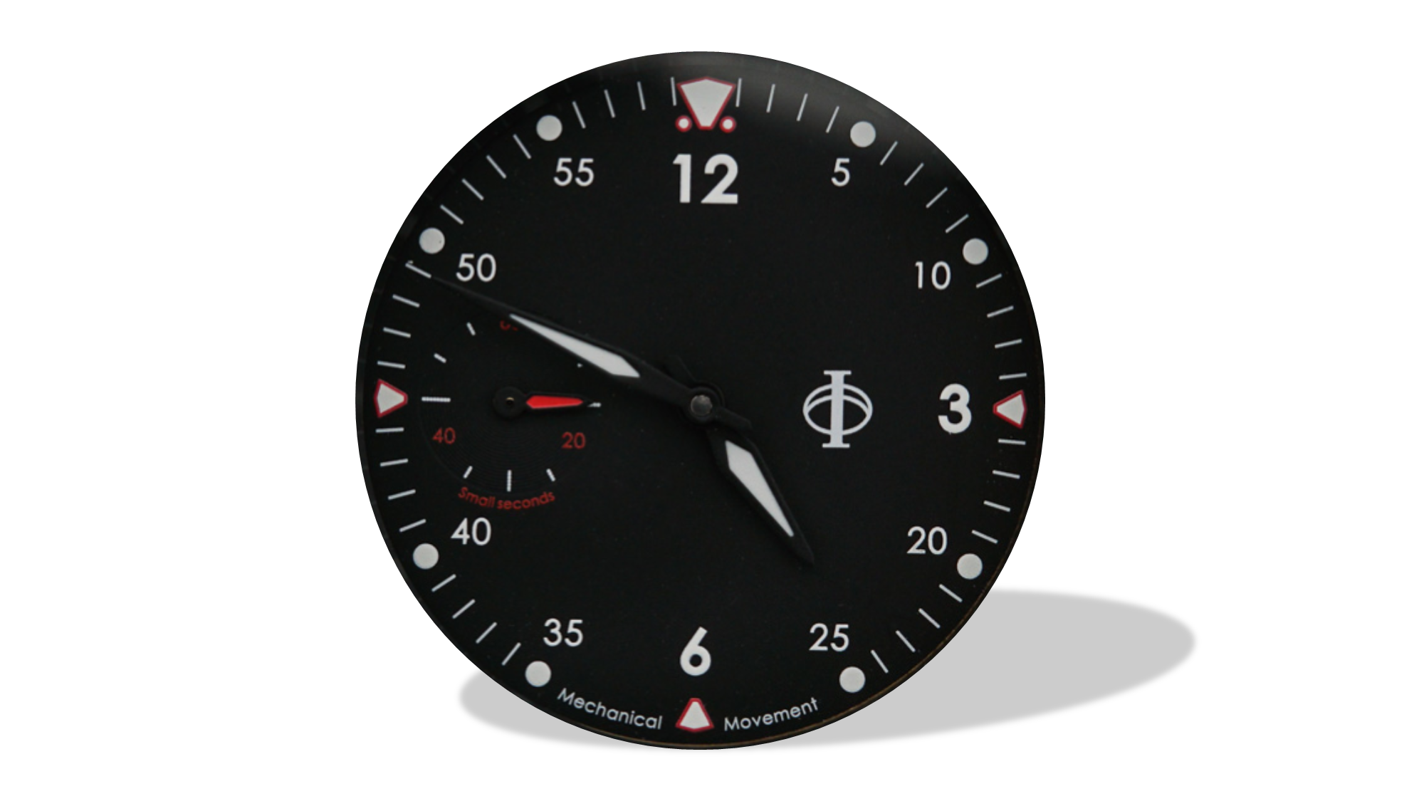 Our 38.5mm pilot dials benefit from high contrast, luminous numerals and hour markers above a classic matte dial finish. The dial is completed by coated hands (lume filled) and a small second hand sub-dial at 9 oclock with a red infilled hand.