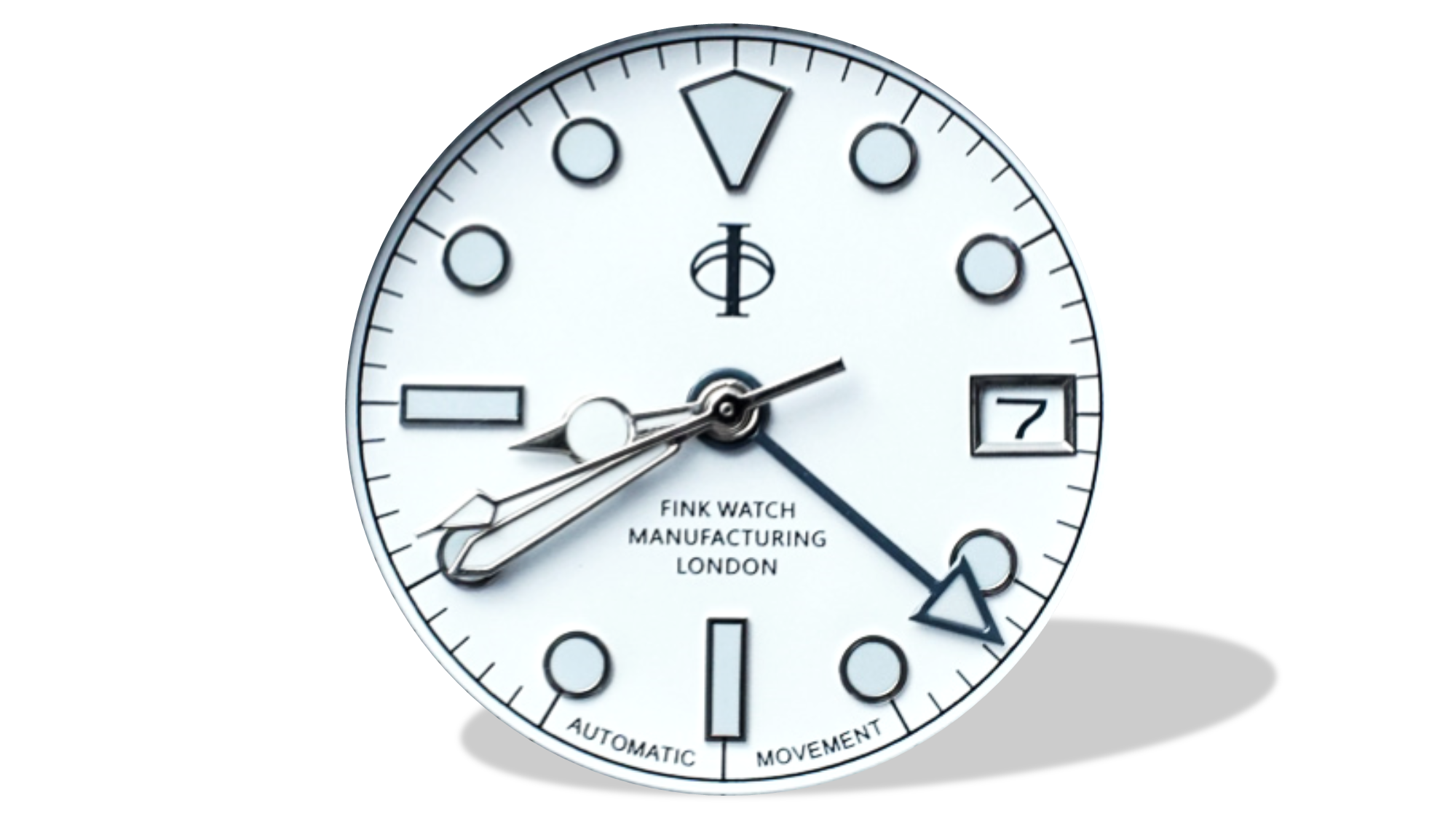 Matte 28.5mm diver dial with applied indices, diver hands (silver polished, lume filled) and GMT hand (lume filled).