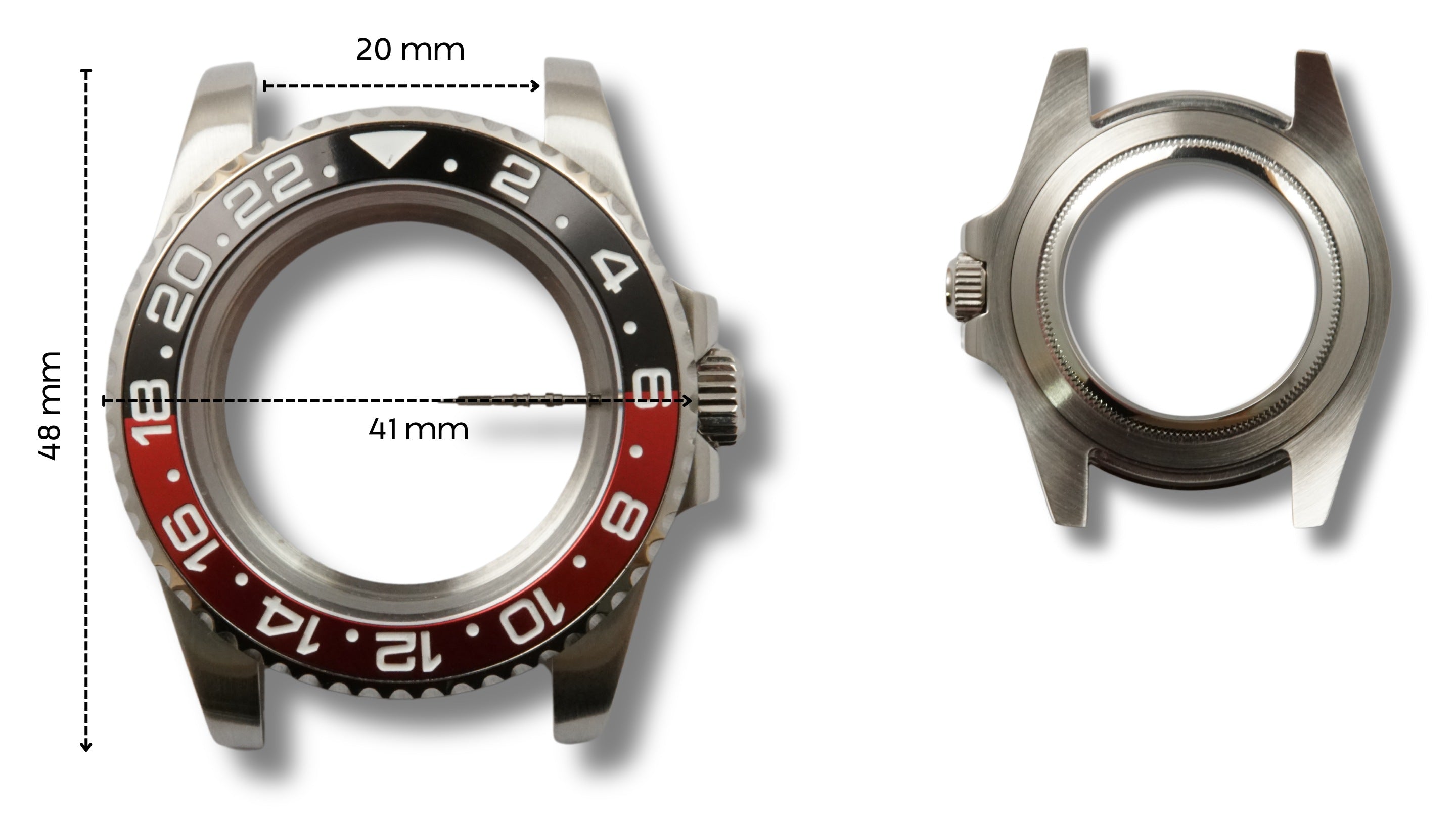With 20mm lug size, the case can use a range of straps! Available for this kit are a flexible, soft FKM strap (with quick release spring bars) or a solid, stainless steel bracelet with screwed-in links and micro adjustment clasp.