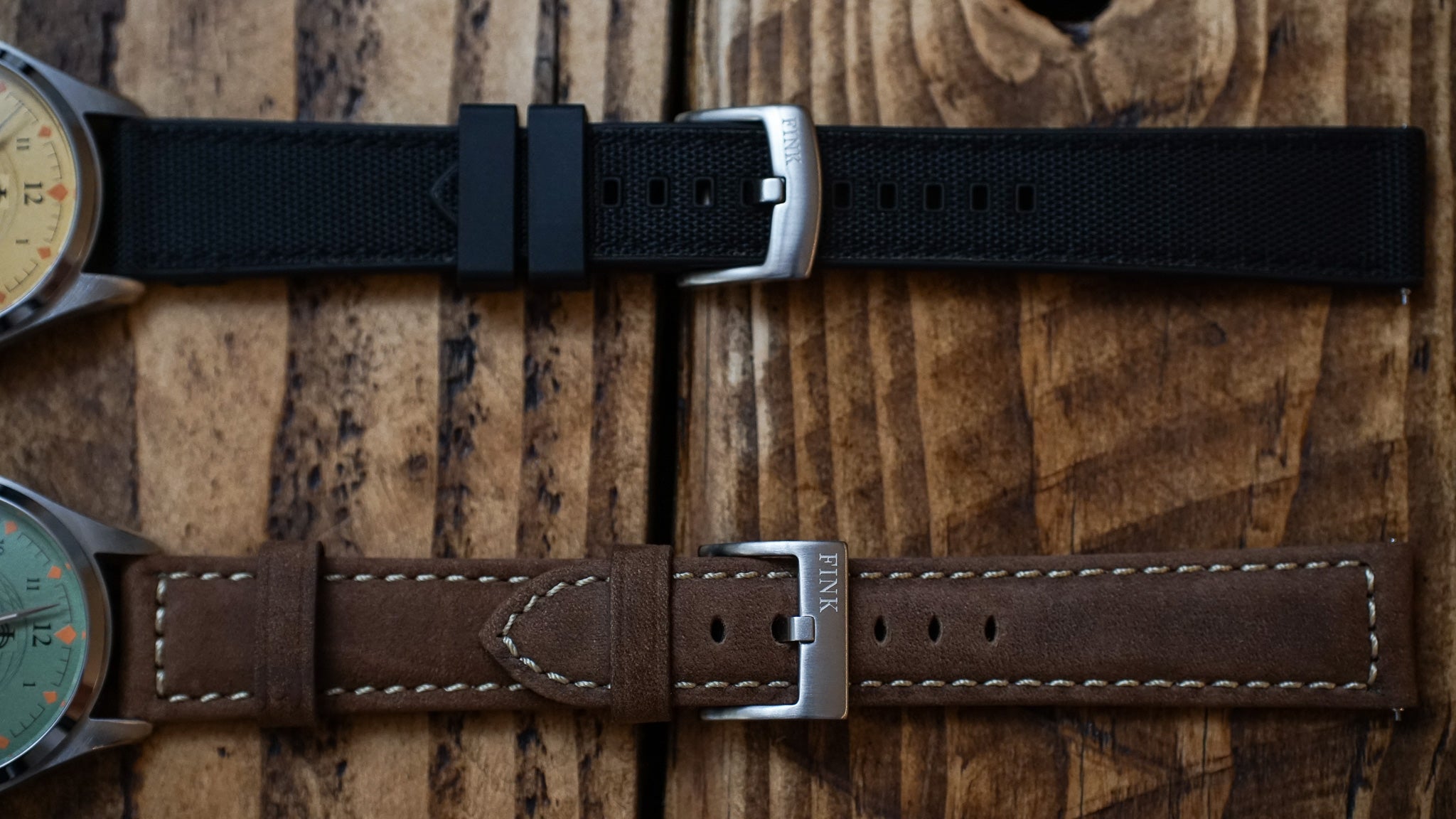 FKM Hybrid strap(120x75mm) with comfortable FKM underside and durable Nylon topside or crazy horse Italian leather strap (cow hide, made in spain, 115/75mm)