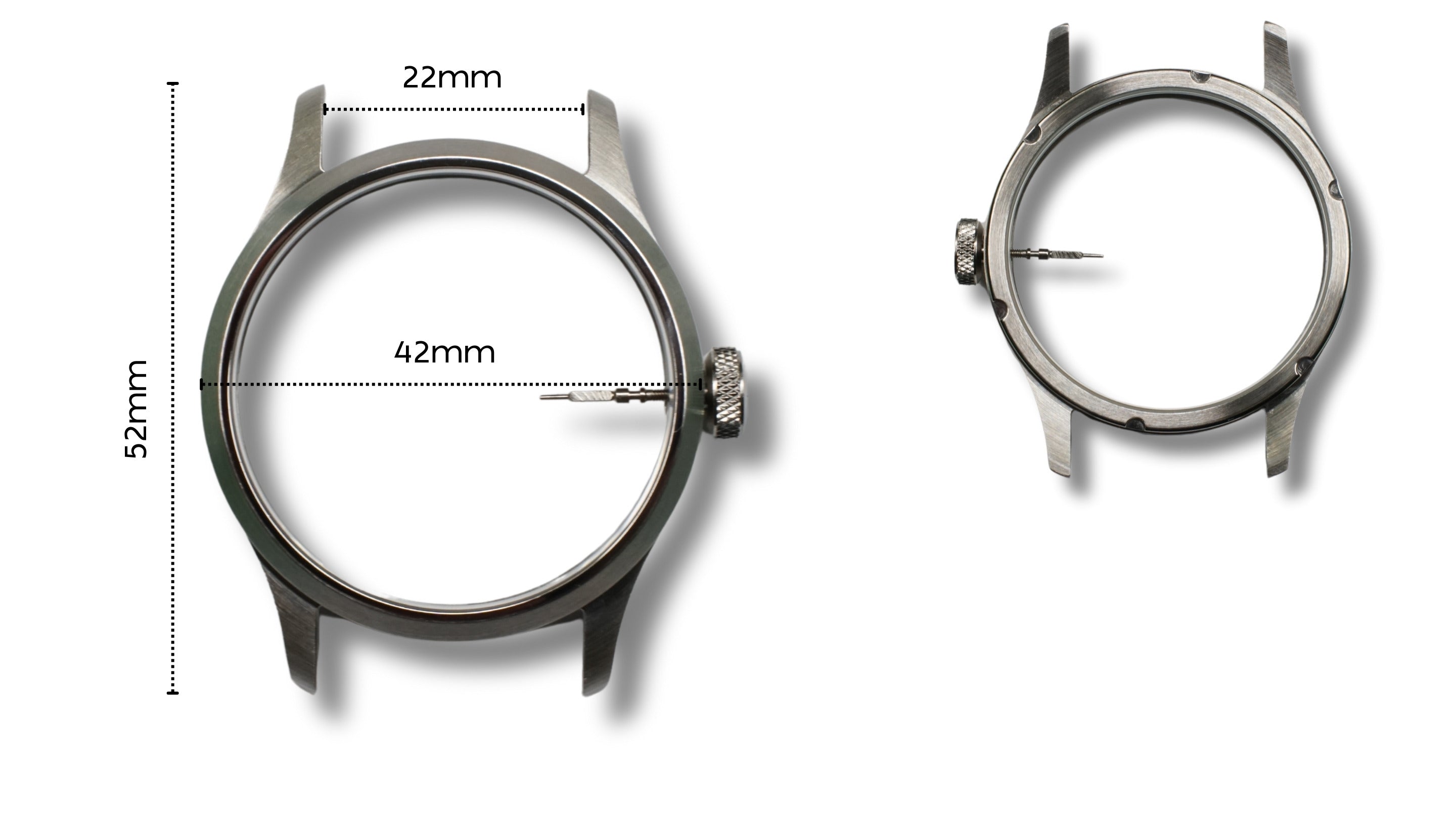 Stainless steel case (42mm size) with see-through case back (22mm lug size)